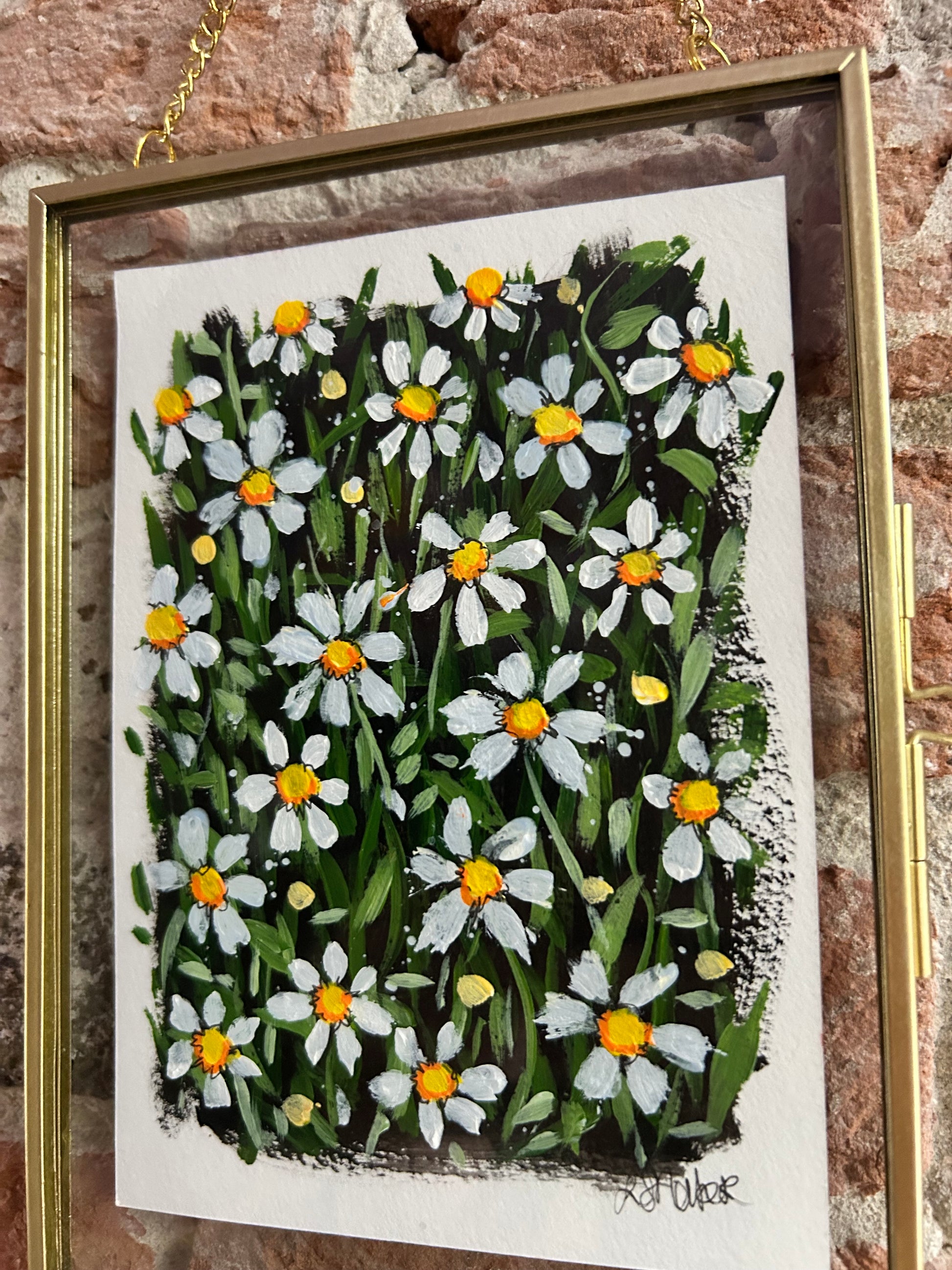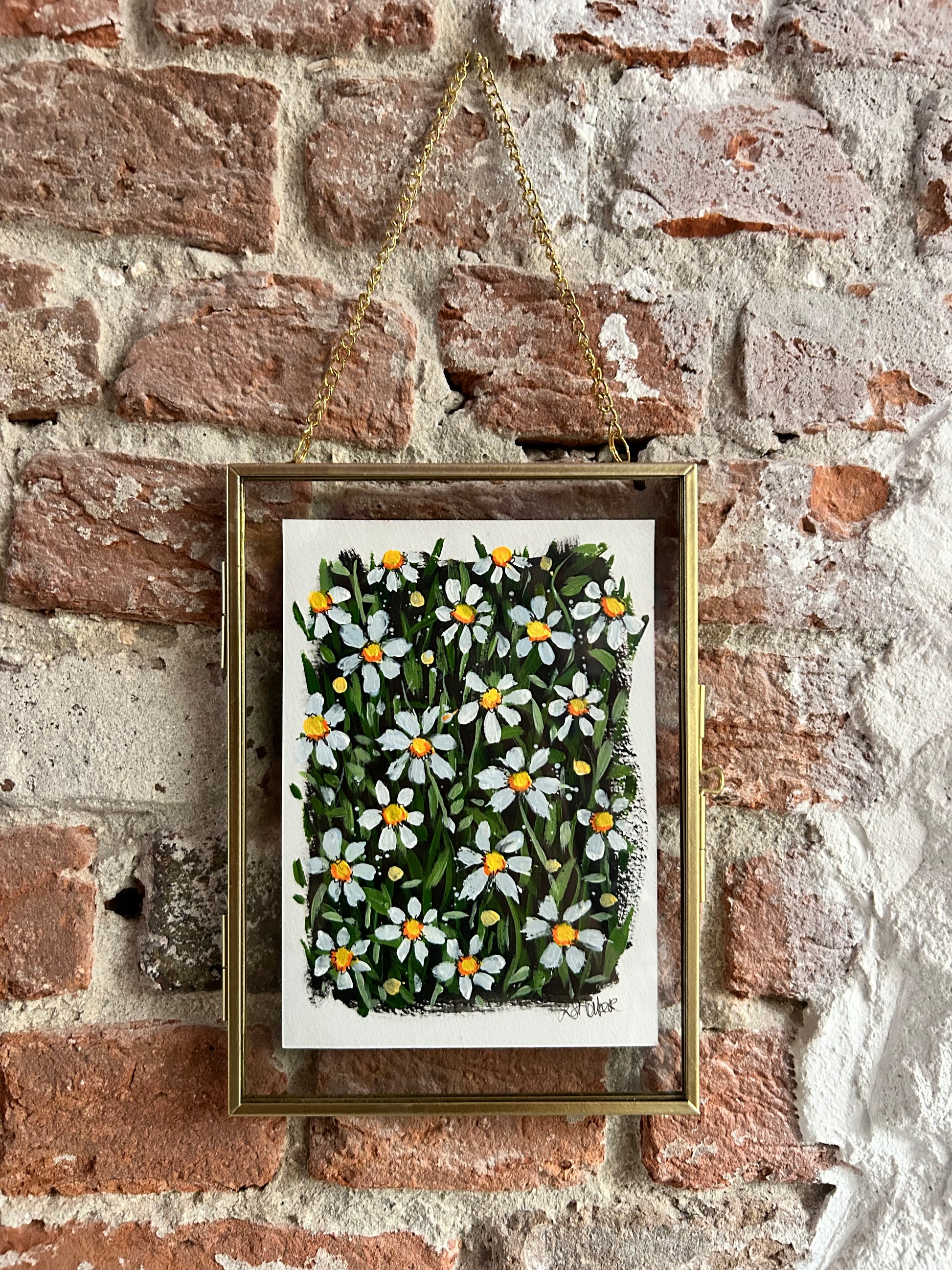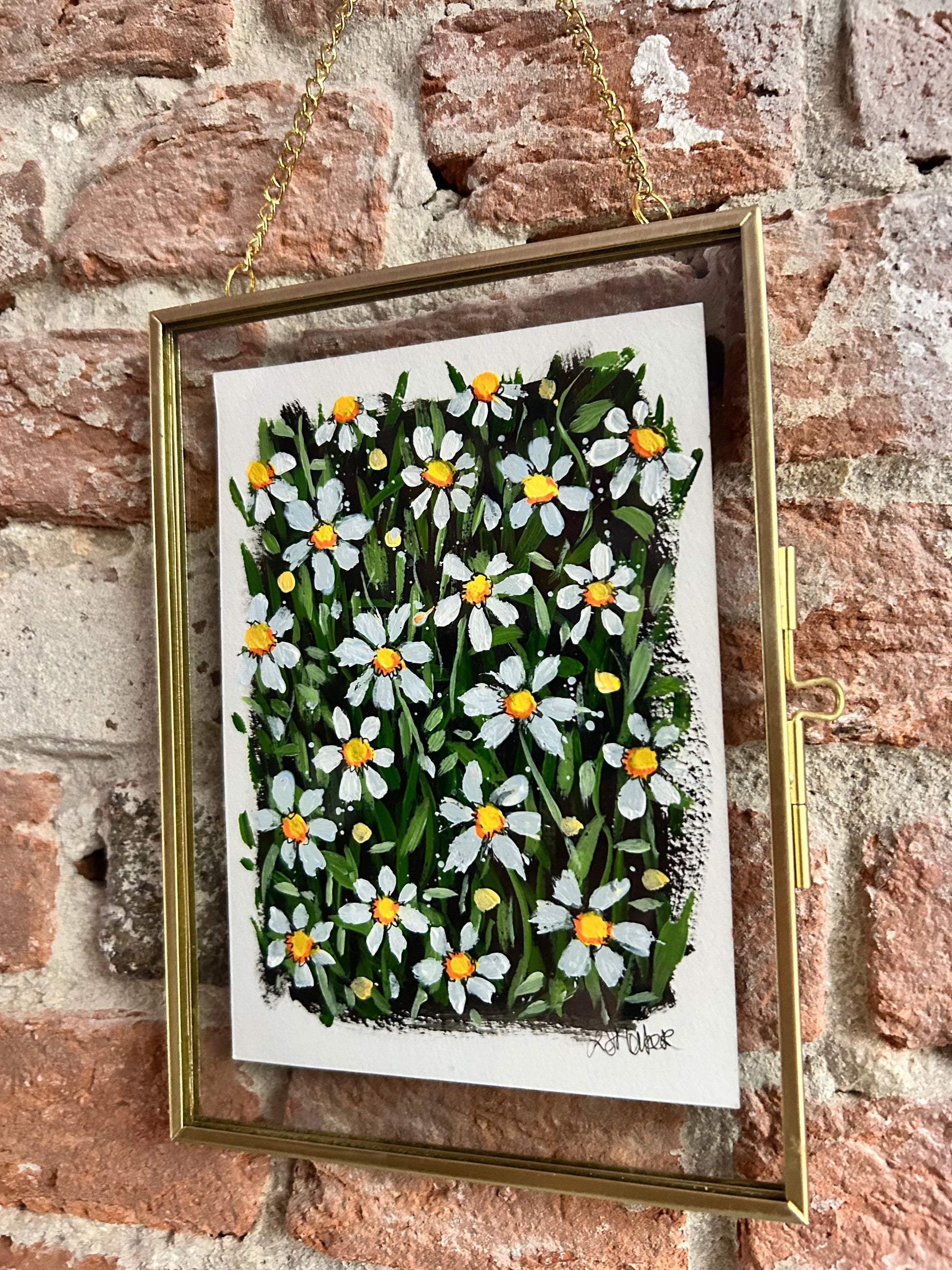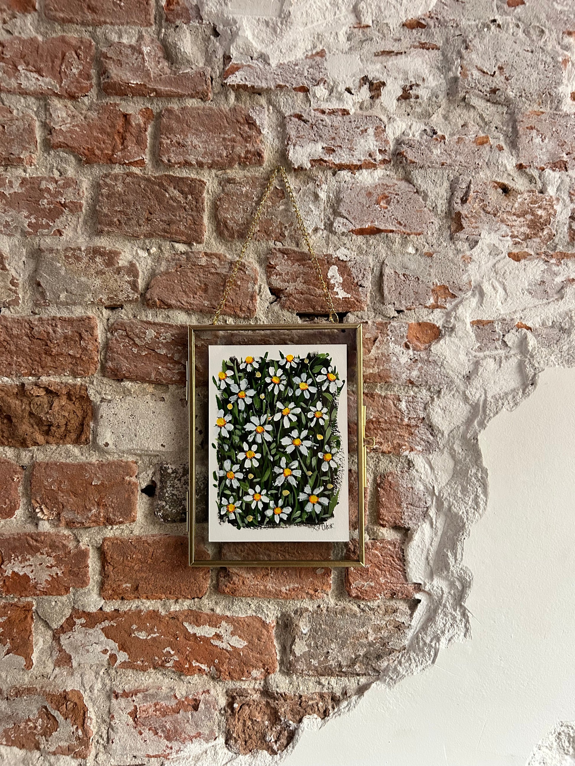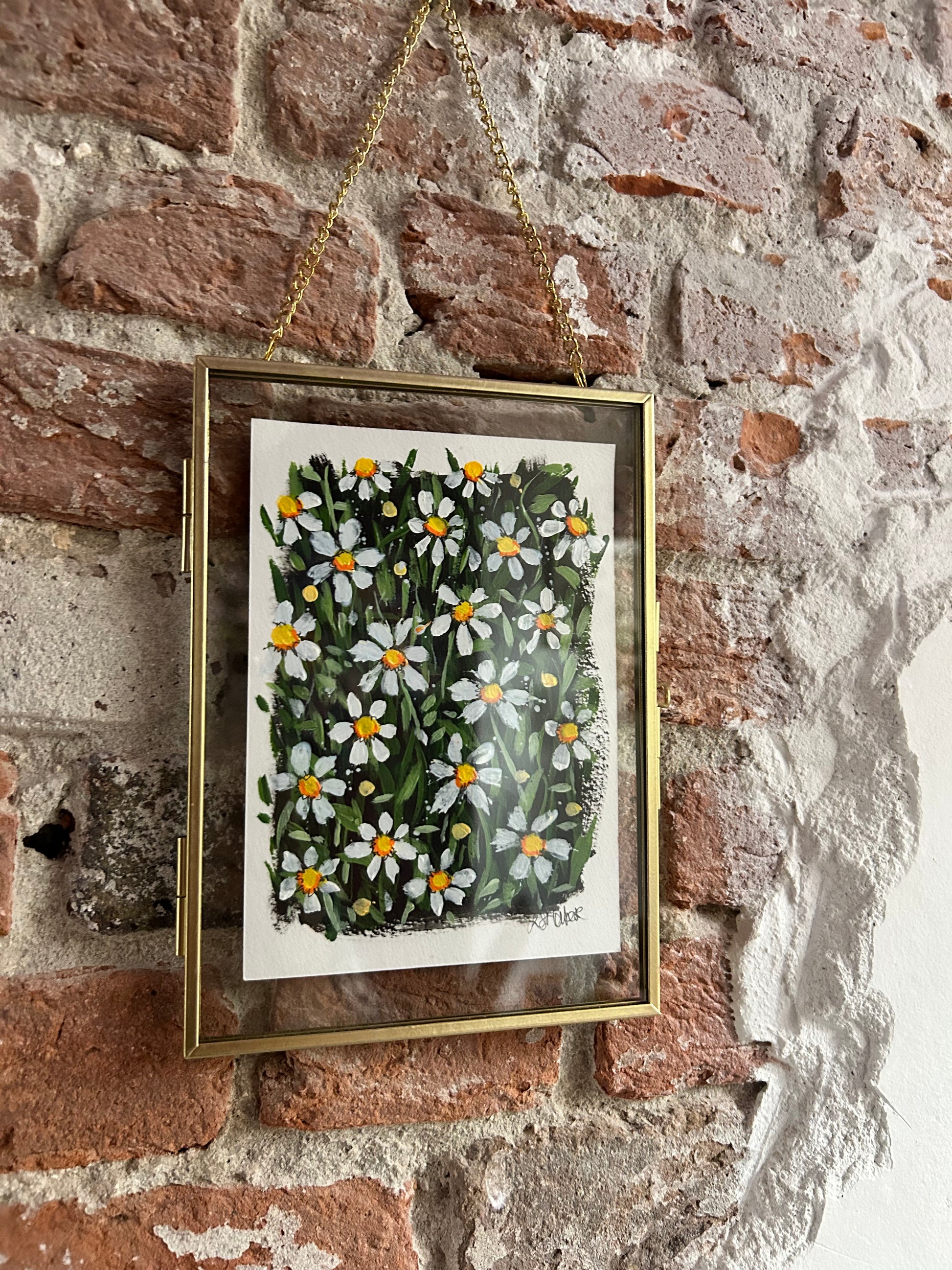 🎨 Materiaal: Acrylverf op papier, glazen lijst met gouden rand En kettinkje