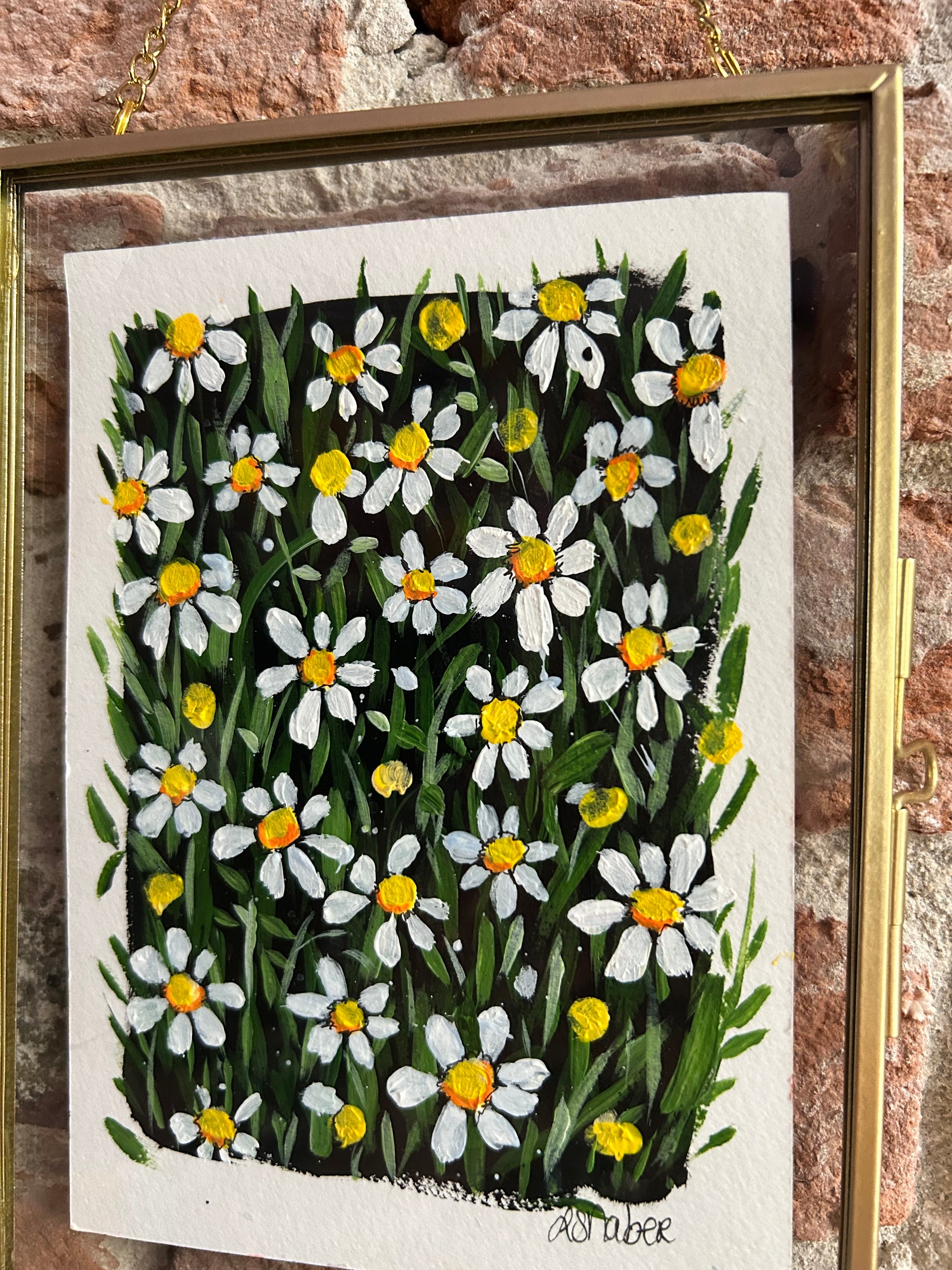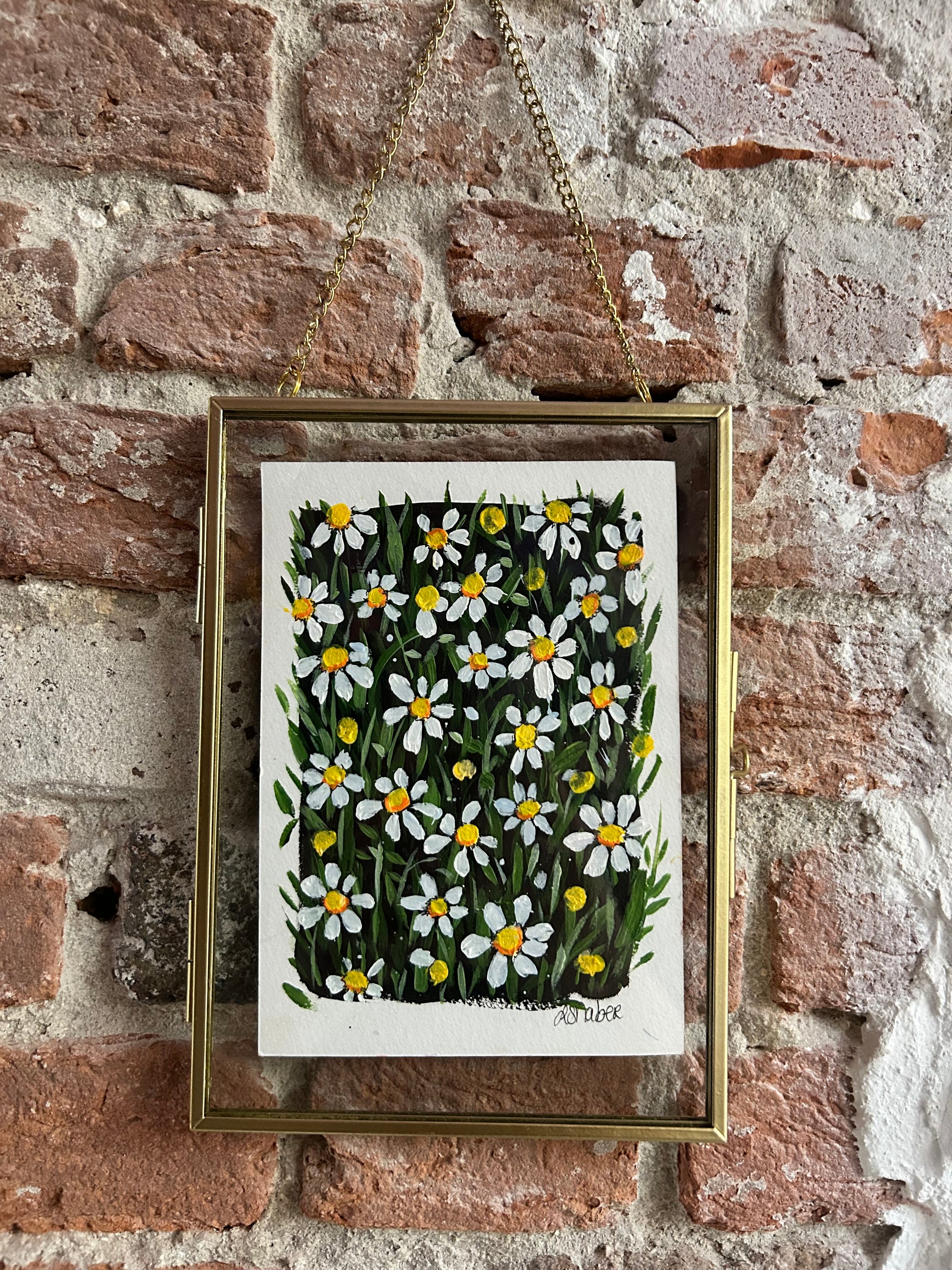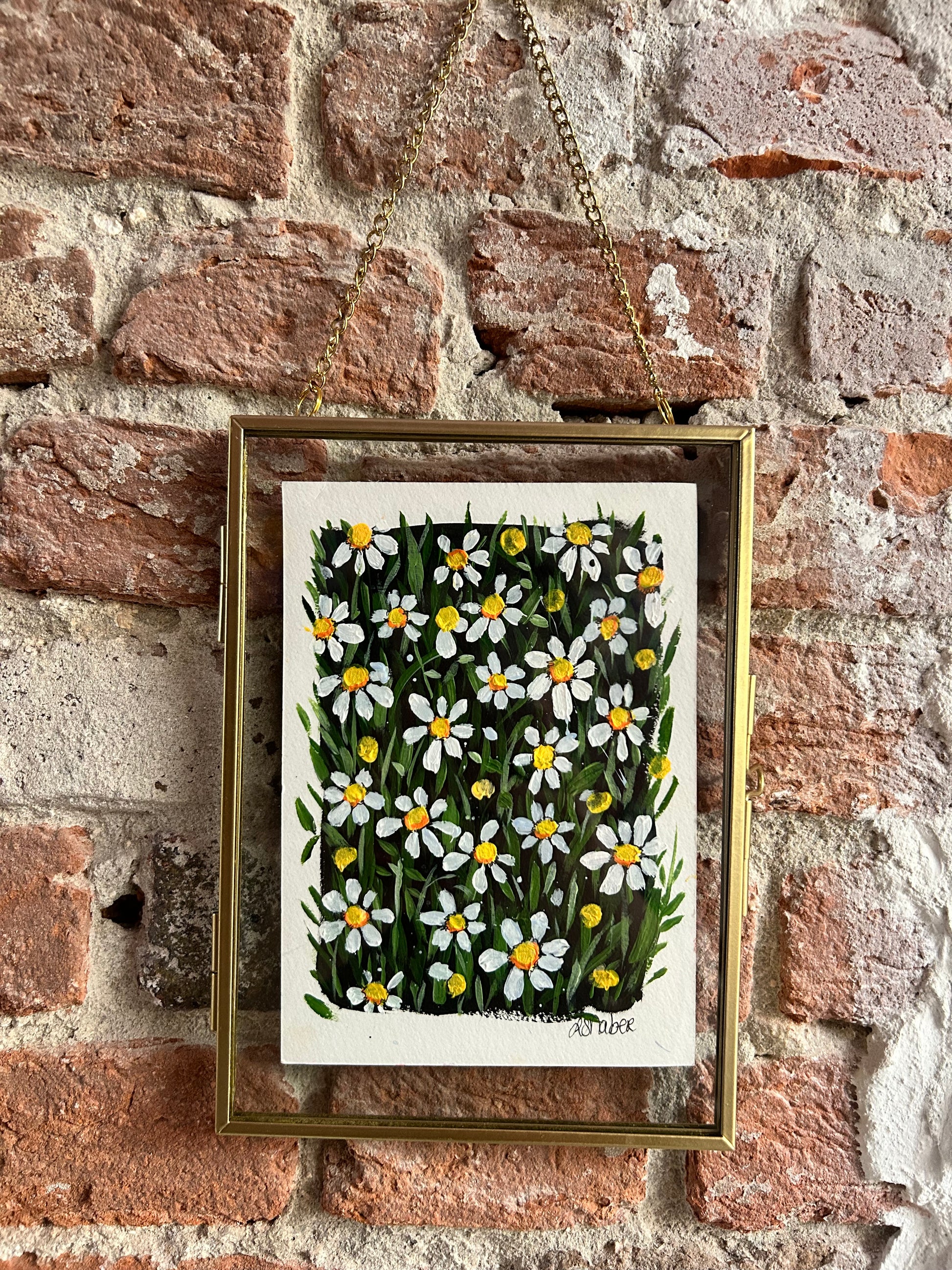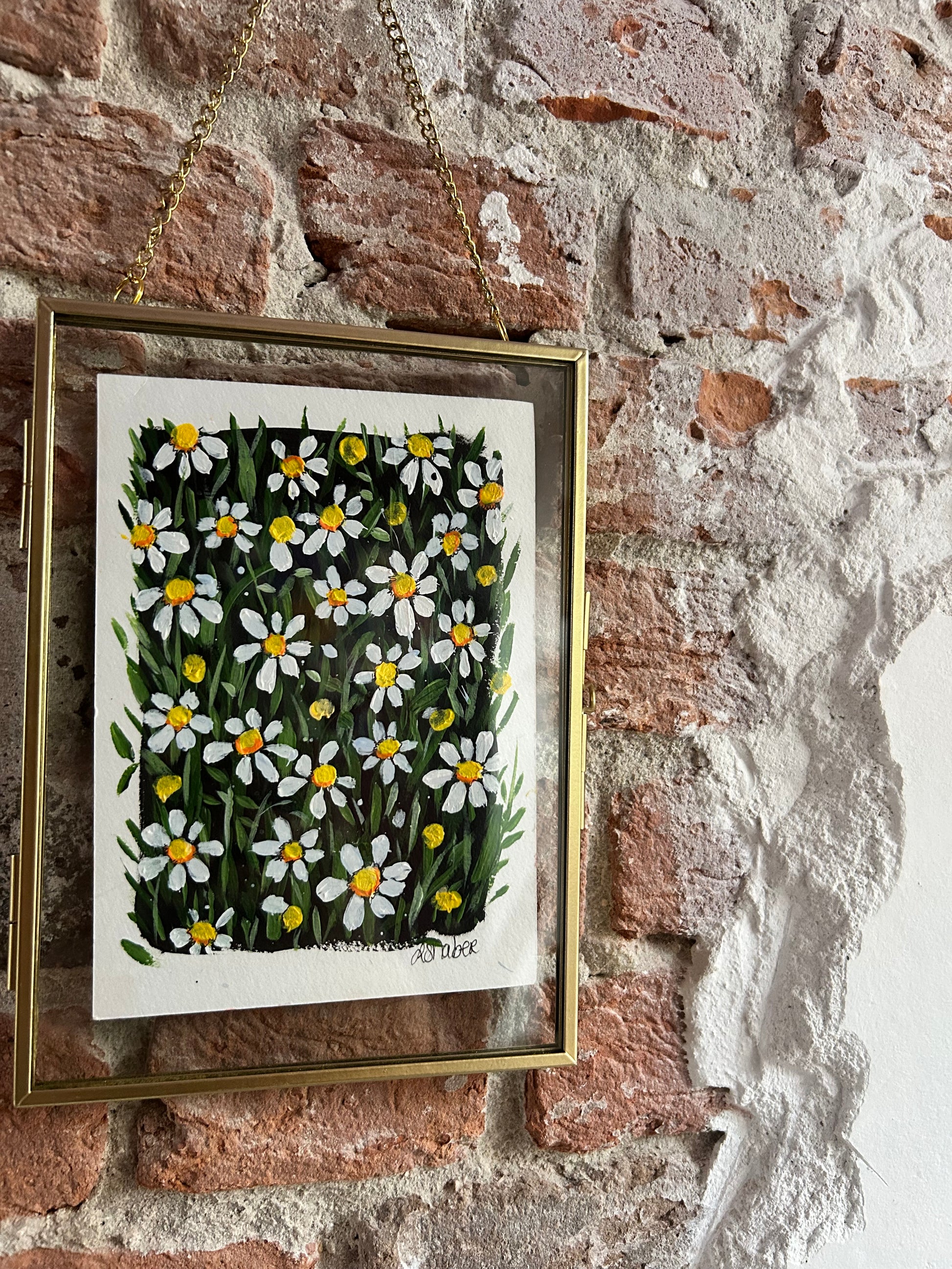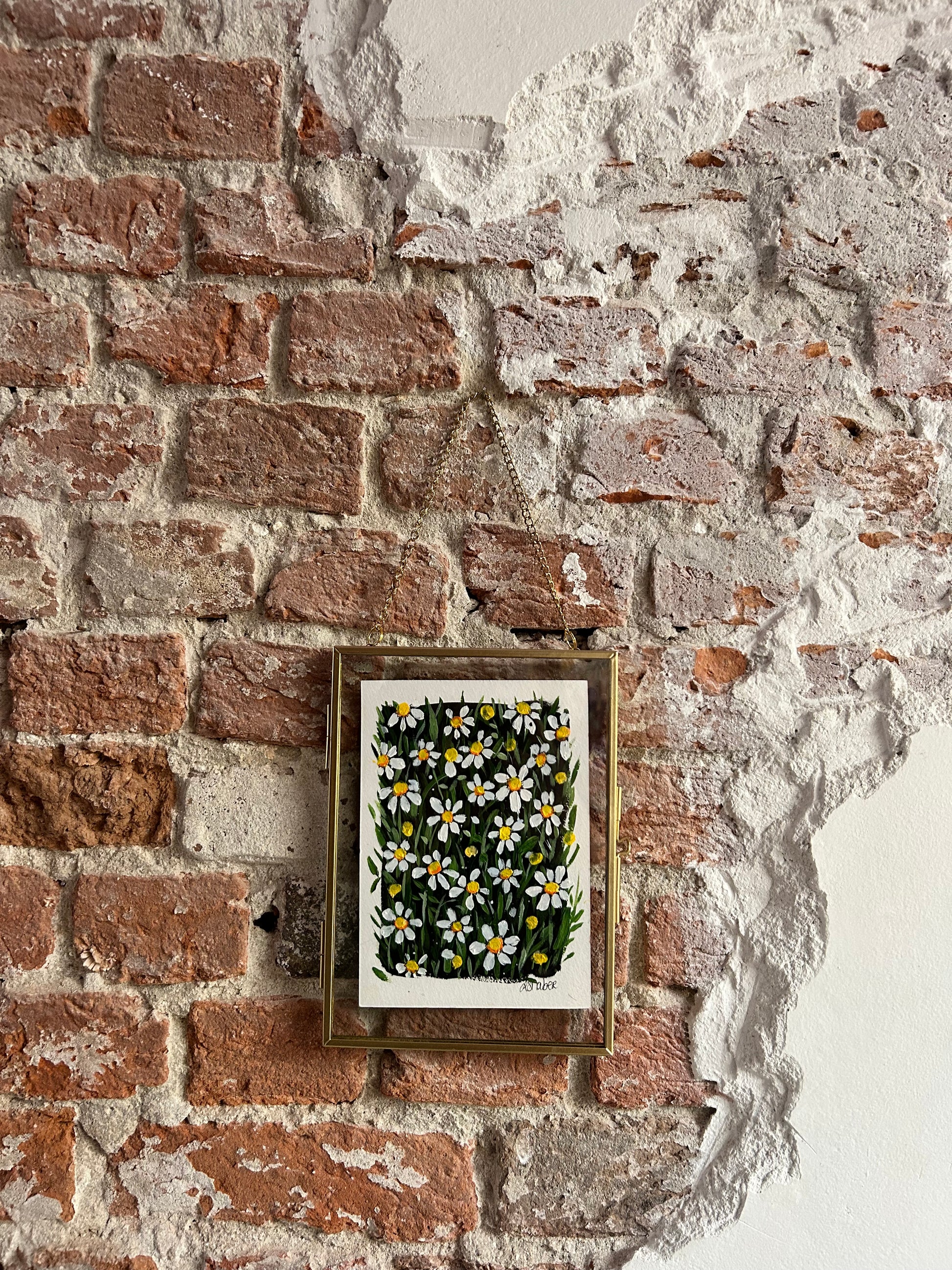 🎨 Materiaal: Acrylverf op papier, glazen lijst met gouden rand En kettinkje