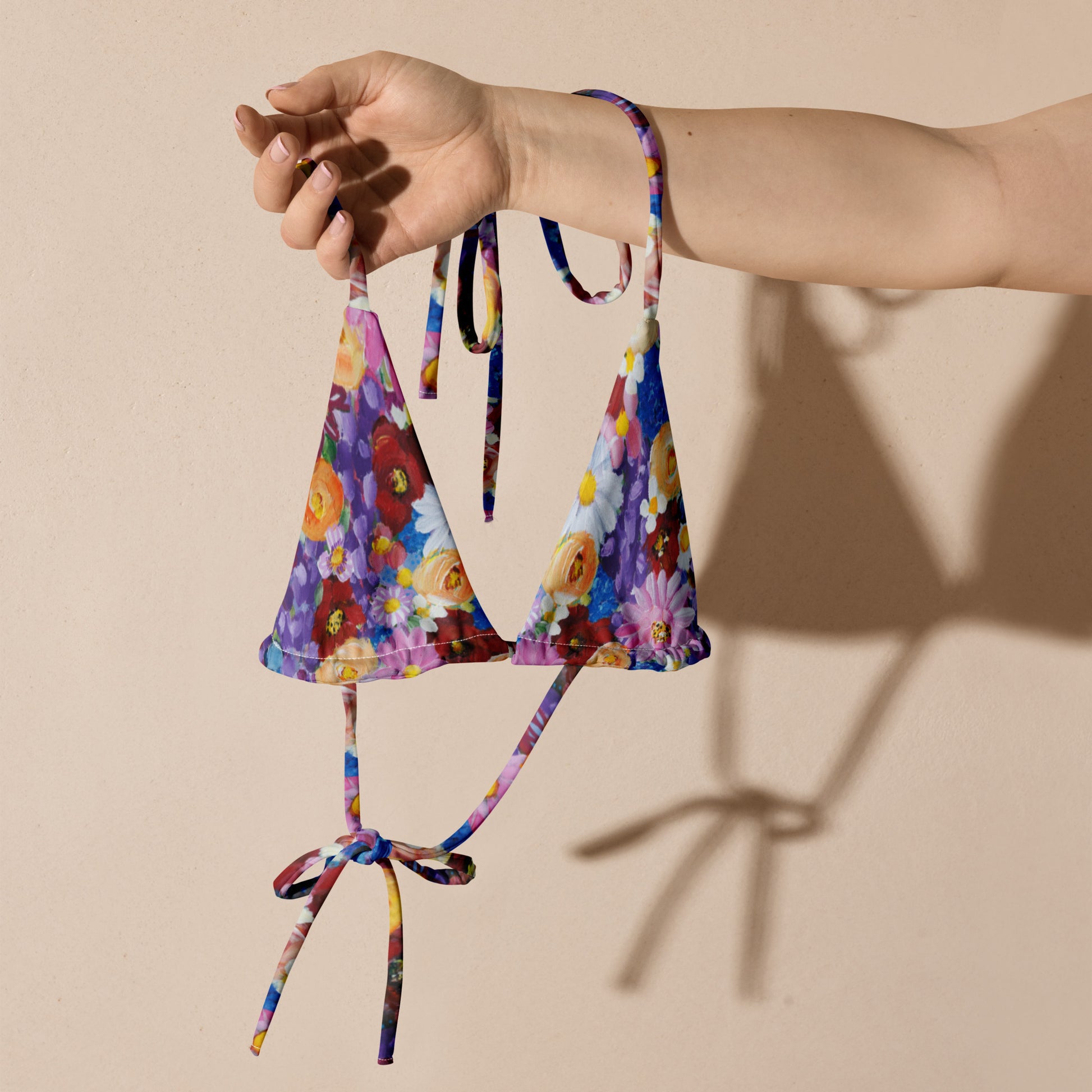 Disclaimer: To make your All-Over Print Recycled String Bikini Top last longer, thoroughly rinse it off after each use and get rid of any chlorine/salt residue.